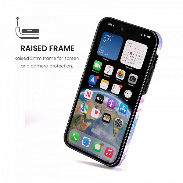 Durch den erhöhten Rand wird der direkte Kontakt zwischen dem Bildschirm und der Oberfläche, auf die das Gerät gelegt wird, verhindert. Dadurch wird das Risiko einer Beschädigung des Displays im Falle eines Sturzes oder Aufpralls reduziert.
