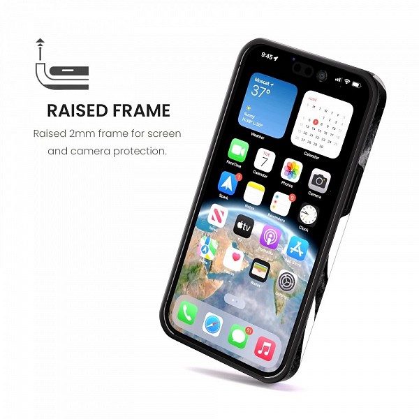 Durch den erhöhten Rand wird der direkte Kontakt zwischen dem Bildschirm und der Oberfläche, auf die das Gerät gelegt wird, verhindert. Dadurch wird das Risiko einer Beschädigung des Displays im Falle eines Sturzes oder Aufpralls reduziert.